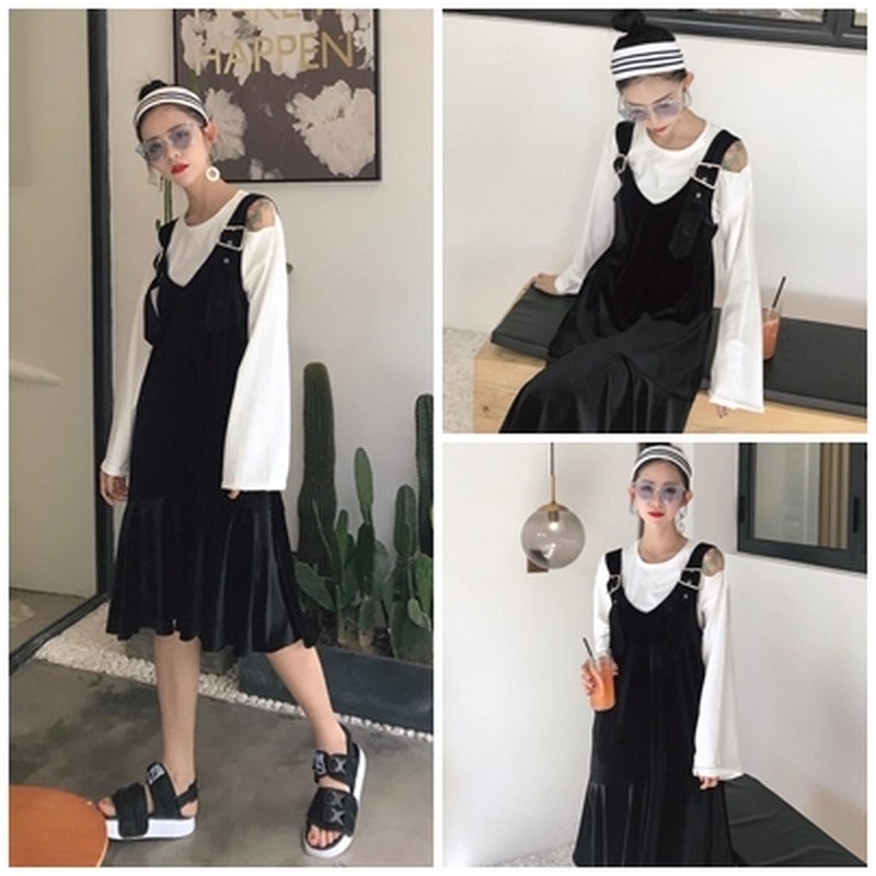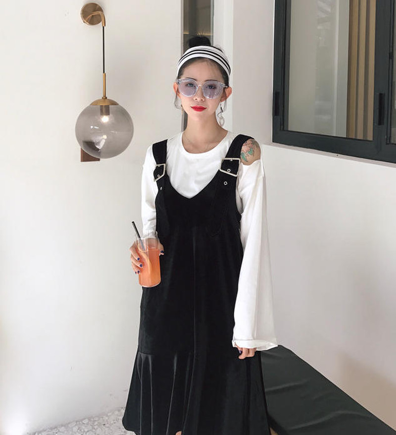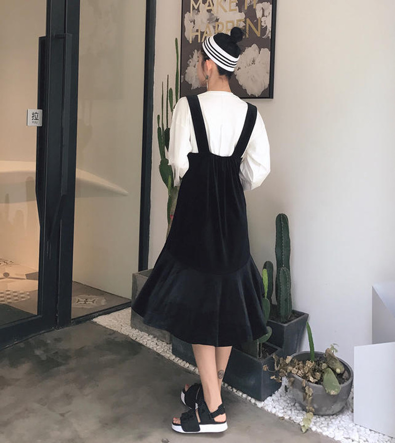 ♢ポイント♢ ベロア生地がおしゃれなサロペットスカートです。 シックに決めるのもさまになります♪
