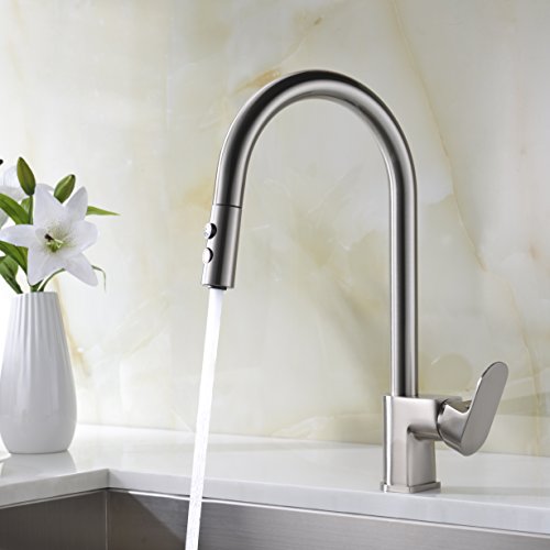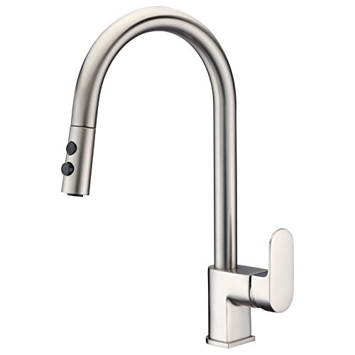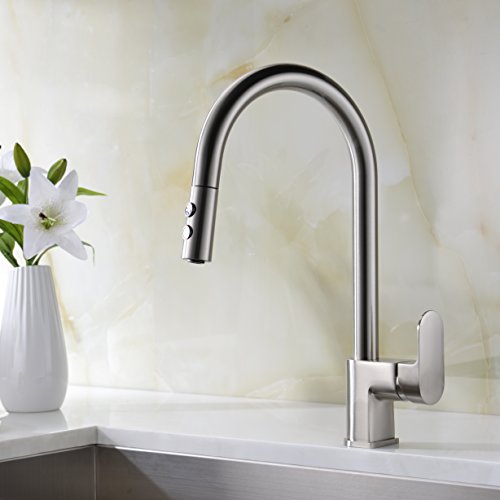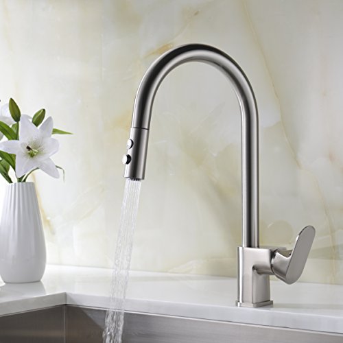 KVADRAT Lead-Free Commercial Stainless Steel High-Arch Brushed Nickel Single Handle Pull Down Sprayer Kitchen Sink Faucets