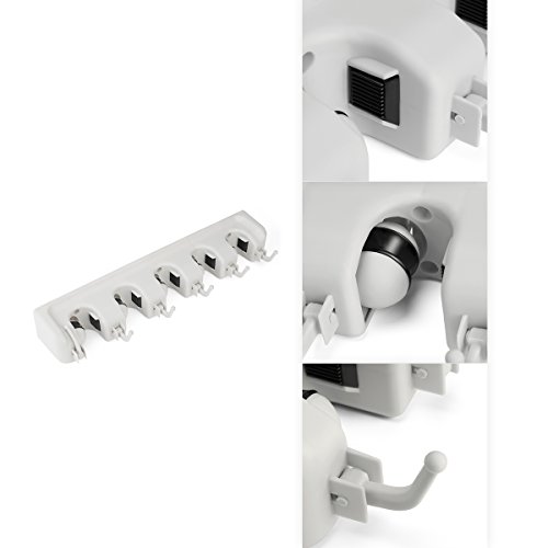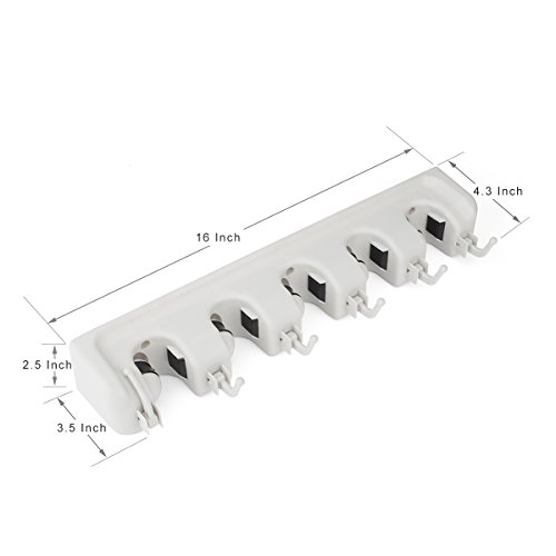- Featuring five spring-loaded, non-slip slots and six foldable hook, so you can organize 11 cleaning utilities in one place. Everything hangs neatly and has it's very own spa. From messy to tidy in no time!