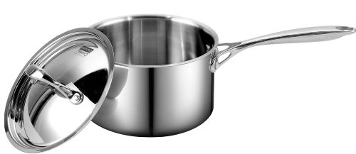 The Cooks Standard 3-Quart Multi-Ply Clad Stainless Steel Saucepan with Lid is made of 18/10 stainless steel with an aluminum core. Multi-ply clad has 3 metal layers. Interior and exterior layers are 18/10 stainless steel. Core is aluminum for even heat distribution that goes from bottom to side walls. Cookware provides the toughness of stainless steel with the even heat distribution of aluminum. Exterior is scratch resistant and brush treated. The secure-fitting stainless steel lid traps in heat and moisture. Solid stainless steel riveted handles stay cool and are comfortable to hold. Multipurpose for frying, double boiling, steaming, making sweets, etc. Induction compatible. Works on gas, electric, glass, ceramic, halogen, etc. Oven safe to 500F. Dishwasher safe. Measures 14.5 by 8 by 5 in., 4.5 lb.Feature