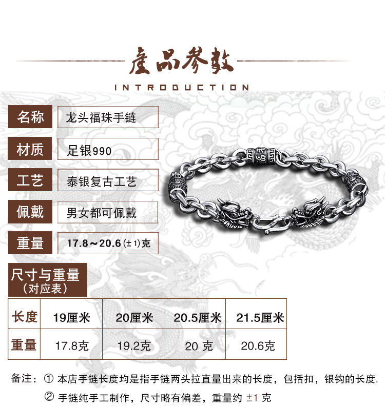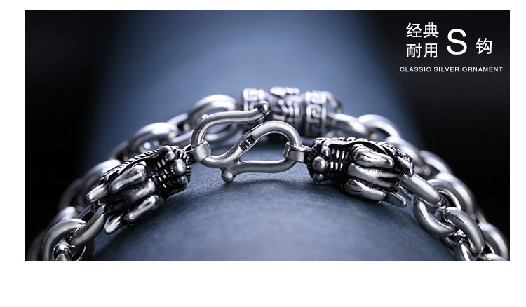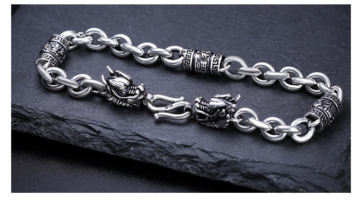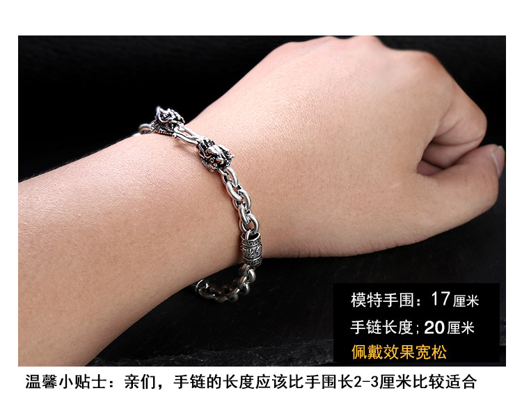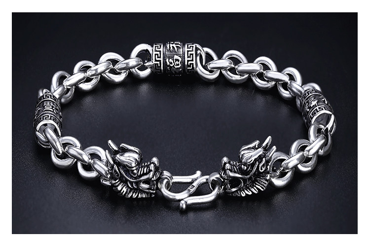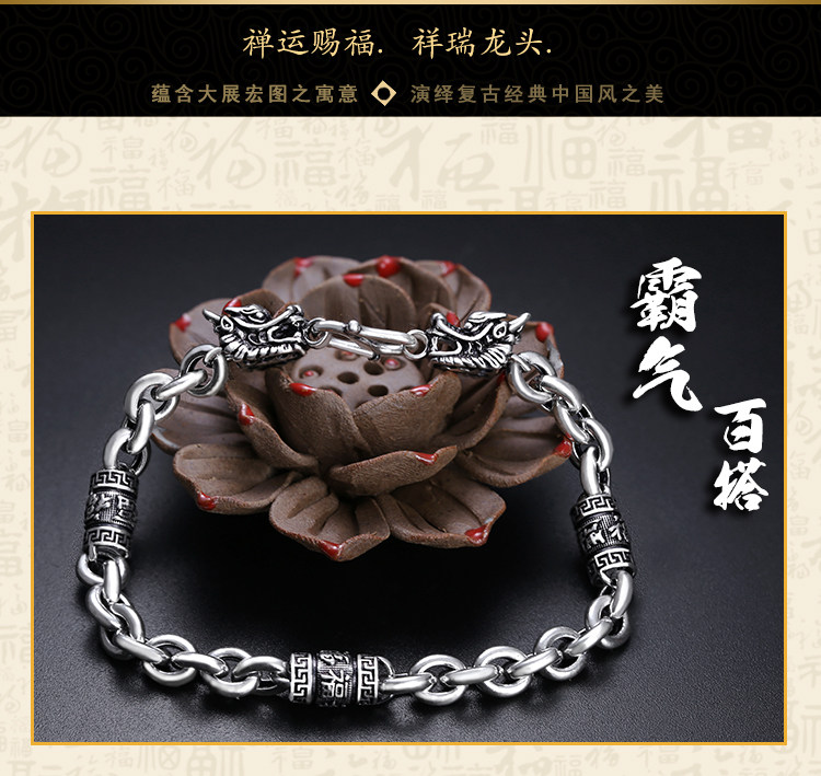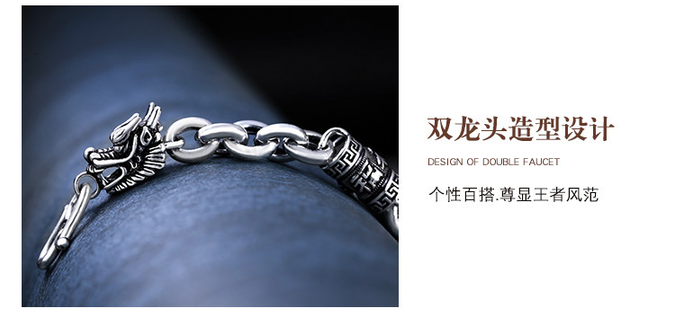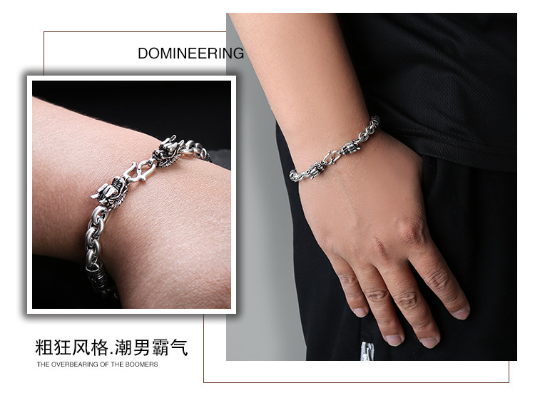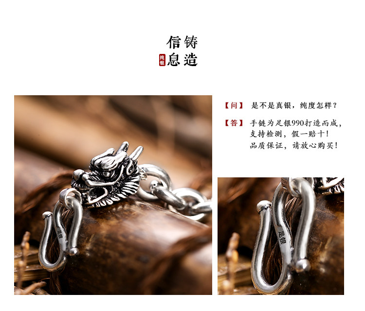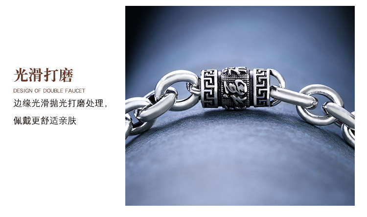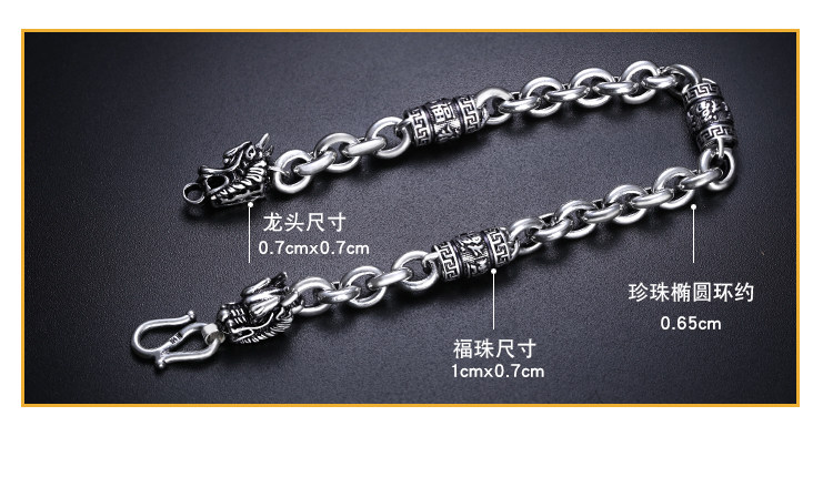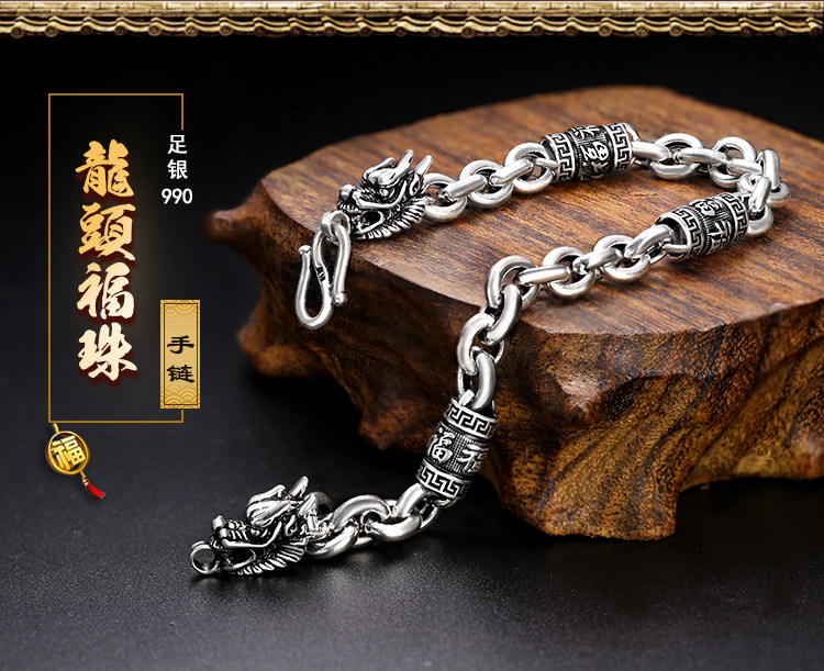 99足银福字龙头手链环套环纯银男士潮男个性潮人学生霸气简约复古