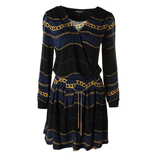 Long sleeve chain printed dress with side tie and fringe tassle.