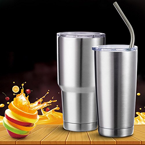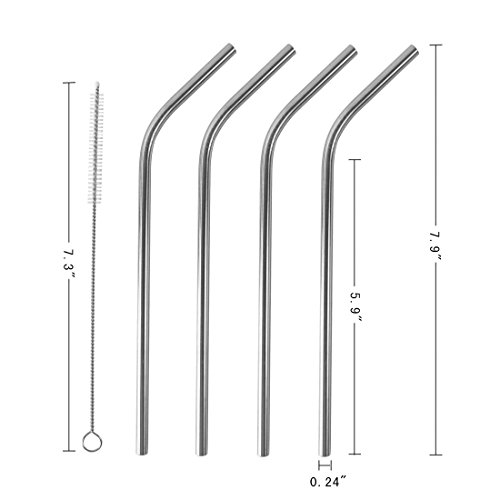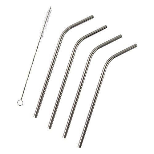 Abakoo 8.5" Reusable Eco Friendly Bend Stainless Steel Drinking Straws, Metal Straws, FDA-Approved, Set of 4, Free Cleaning Brush Included