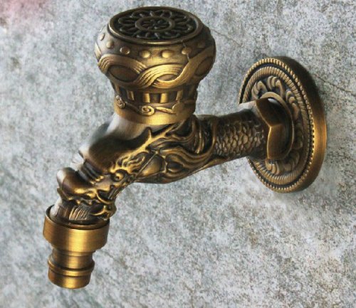Rozin Dragon Relievo Antique Brass Single Cold Tap Washing Machine Faucet Kitchen Sink Tap