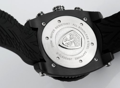 The crystal protecting this fine instrument is made of sapphire-which will resist scratches and look sharp and clear for years. The strap is a soft and pliable silicone, to wrap comfortably around your wrist and hold the Deep Sea safe, no matter if you're skiing in the Alps or timing a Formula One car at Monaco. The underside of the strap has an automotive look tread pattern that looks sharp but also allows for air to ventilate between the strap and your skin.