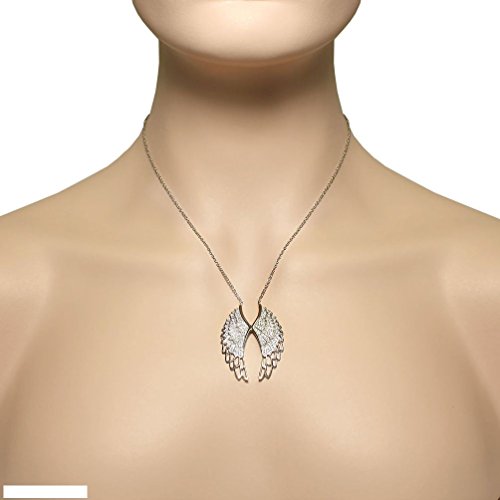 -. Binding : Jewelry -. Brand : Anguss Fashion Jewelry -. Department : girls -. Feature : Length (inches):18 / The pendant features an elegant design showcasing a gorgeous angel wings-shaped charm. The necklace is shining with the highly polished finish and sparkling with beautiful white CZ stones. The necklace is crafted of . rhodium plated. Get it for your loved one or treat yourself for a classic timeless style. The delicate yet durable link chain measures 18.00in long and locks with a sP.R.Ing ring type of clasp for extra security. -. Label : Anguss -. Manufacturer : Anguss -. Model : 282175295785 -. MPN : 282175295785 -. PartNumber : 282175295785 -. ProductGroup : Jewelry -. ProductTypeName : FASHIONNECKLACEBRACELETANKLET -. Publisher : Anguss -. Studio : Anguss -. Title : White CZ Womens Large Angel Wings Pendant Necklace