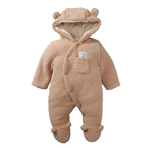 ベビーちゃんがカワイイクマさんに大変身!ふわふわ軽く暖かい着心地。赤ちゃんの頭からつま先まですっぽりと包んでベビーロンパースです。