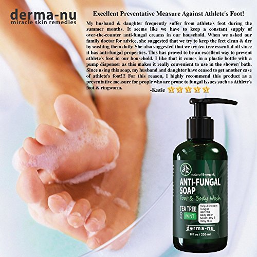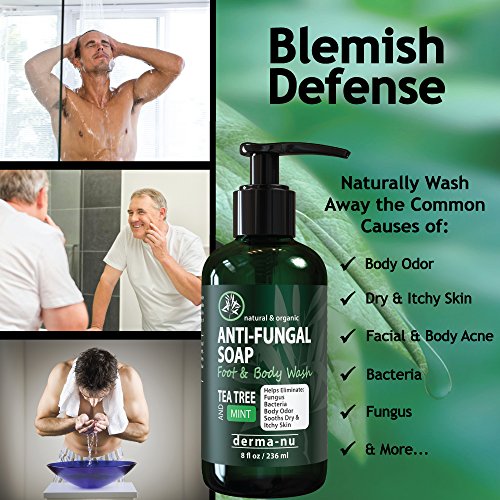 -. Title : Antifungal Soap with Tea Tree Oil & Active Ingredients Help Treat & Wash Away Athletes Foot, Nail Fungus, Jock Itch, Ringworm, Body Odor & Acne. Antibacterial Defense Against Fungal Irritations - 8oz
