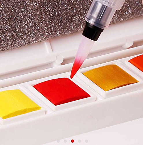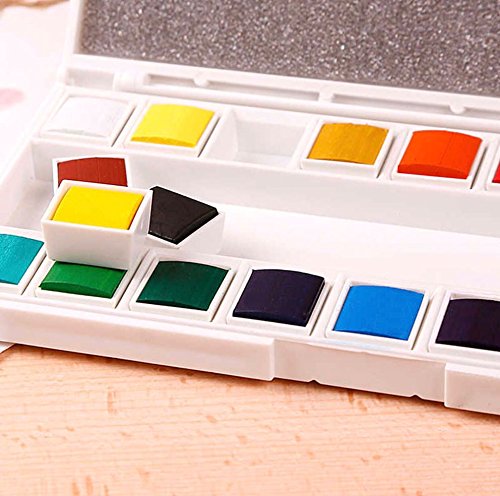 Contents: 36 Vibrant Colors in 36 mini watercolor cakes, Two Water Brush (One Round, One Flat)To Transport and store water, A Porcelain Calligraphy Dish, Sea Sponge, All in a Plastic Case