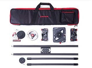The Shark Slider S1 special bundle comes with the Auxiliary weight, extender rods, extended belt and the carrying case. It can be mounted on a tripod using the under- rail cheeseplate with multiple 3/8-16 and ¼-20 threaded holes.