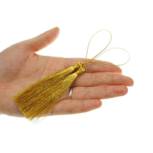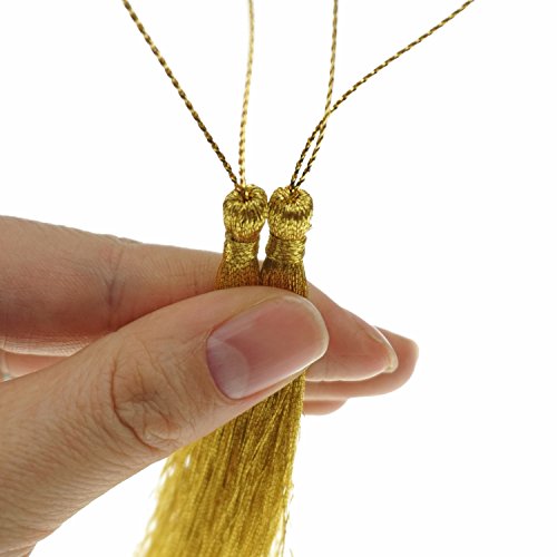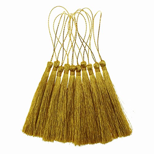 - Product details: One package includes 10 gold thread tassels. Overall length about 5 inches, upper hanging rope length about 2 inches, tassel fringe length is about 3 inches. (Because it is pure hand-made, the size of a slight deviation, please understand.)