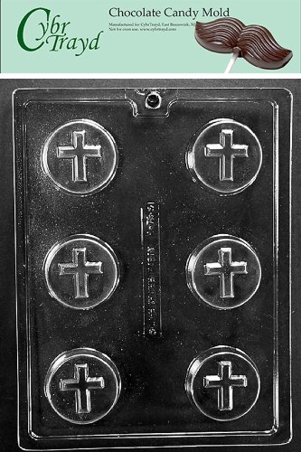 Cybrtrayd R073 Cookie with Cross Chocolate Candy Mold with Exclusive Cybrtrayd Copyrighted Chocolate Molding Instructions plus Optional Candy Packaging Bundles