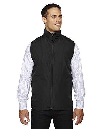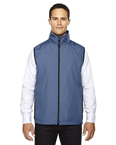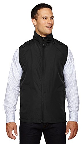 Binding : Apparel Product Description 100% 240T polyester, 2.7 oz./yd2/90 gsm w/water resistant finish; LINING: 100% polyester mesh?; piped contrast side panels; stretch binding finish on armholes; on-seam front zippered pockets; concealed back vents for added breathability?; adjustable shockcord at hem; 0