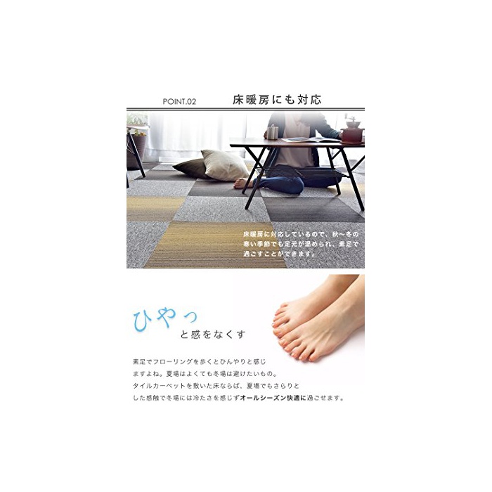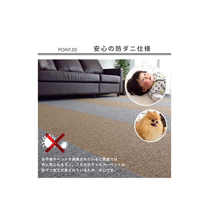 원본상품명:タンスのゲン 【20枚セット】 洗える タイルカペット 大判 50×50(cm) 防炎 制電性 パイル長 3.5mm TB3-101 24010037 06