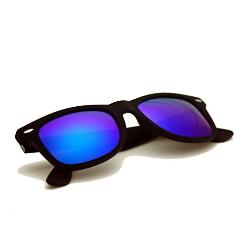 Wayde2338's design is inspired by the retro Wayfarer. Matte black frame with soft rubber coating, stylishly wide high sitting temples and minute metal decorations make Wayde2338 be your must-have sunglasses. Retro Wayfarers with a unique frame that has become a fashion icon since their introduction in 1956. Wayde2338's horn-rimmed style frame will never fall out of fashion. It equipped with grey polarized lenses or polarized mirror lenses with various color options. Polarized lenses provide with you improved clarity and keep your eyes from harmful UVA and UVB rays.