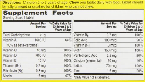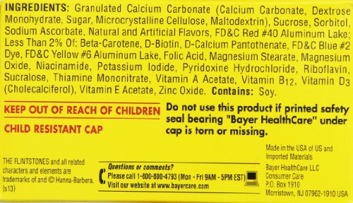 -. Binding : Health and Beauty -. Brand : Flintstones Vitamins -. EAN : 0016500553892 -. Feature : Complete children's chewable multivitamin specifically formulated for the needs of toddlers. / 80 Chewable Tablets / 1 Tablet per Serving -. IsAdultProduct : 0 -. Label : Flintstones -. LegalDisclaimer : Actual product packaging and materials may contain more and/or different information than that shown on our Web site. We recommend that you do not solely rely on the information presented and that you always read labels, warnings, and directions before using or consuming a product. Content on this site is for reference purposes and is not intended to substitute for advice given by a physician, pharmacist, or other licensed health-care professional. You should not use this information as self-diagnosis or for treating a health problem or disease. Contact your health-care provider immediately if you suspect that you have a medical problem. Information and statements regarding dietary supplements have not been evaluated by the Food and Drug Administration and are not intended to diagnose, treat, cure, or prevent any disease or health condition. ABC Wholesale assumes no liability for inaccuracies or misstatements about products. -. Manufacturer : Flintstones -. Model : 55389 -. MPN : 55389 -. NumberOfItems : 1 -. PackageQuantity : 1 -. PartNumber : 55389 -. ProductGroup : Health and Beauty -. ProductTypeName : HEALTH_PERSONAL_CARE -. PublicationDate : 2013-03-16 -. Publisher : Flintstones -. ReleaseDate : 2013-03-04 -. Size : 80 -. Studio : Flintstones -. Title : Flintstones Toddler Chewable, 80 Count -. UPC : 016500553892