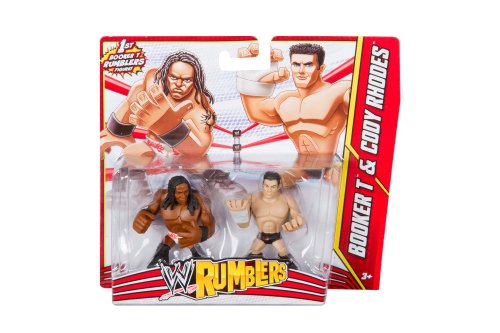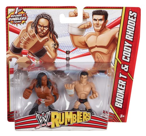 -. Binding : Toy -. Brand : Mattel -. EAN : 0746775187989 -. Feature : Bring home the officially licensed WWE action / The mightiest WWE Superstars have gone mini / Includes 2 mini figures grouped together to re-create key match-ups and rivalries / Features Superstar styling, 4 points of articulation and a mighty grip to hold accessories / Collect the entire Rumblers world to build your own battle -. IsAdultProduct : 0 -. Label : Mattel -. Manufacturer : Mattel -. Model : Y0654 -. MPN : Y0654 -. PackageQuantity : 1 -. PartNumber : Y0654 -. ProductGroup : Toy -. ProductTypeName : TOYS_AND_GAMES -. Publisher : Mattel -. Studio : Mattel -. Title : WWE Rumblers Booker T and Cody Rhodes Figure, 2-Pack -. UPC : 746775187989 -. Warranty : 1 year warranty against manufacturer defects