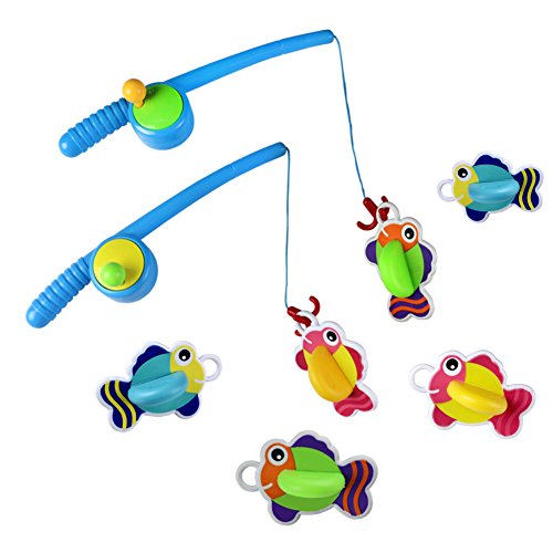 Fishing toys include two fishing rods and six colorful fish,suitable for kids 3 years old+.