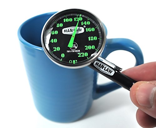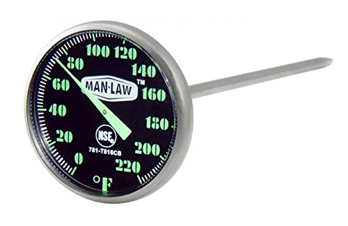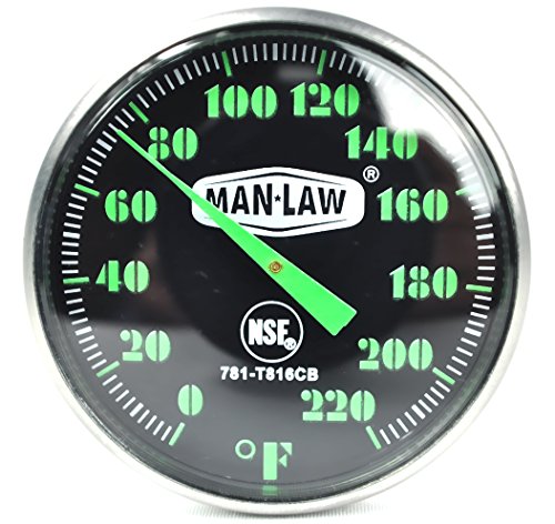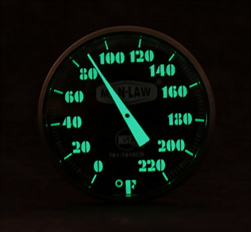 MAN LAW BBQ Stainless Steel Instant Read Gauge Thermometer with Glow in the Dark Dial, 1.6-Inch Diameter