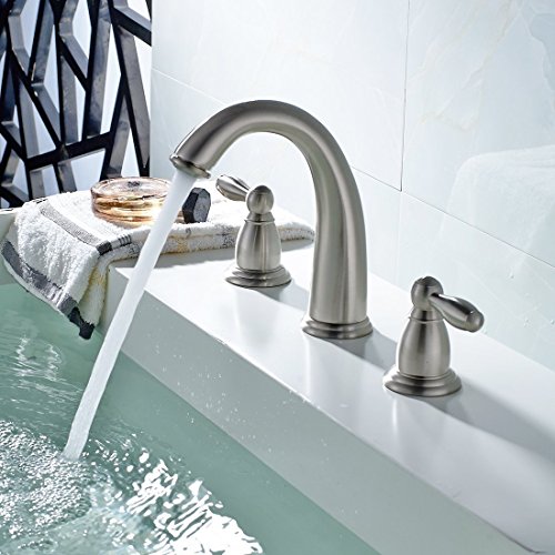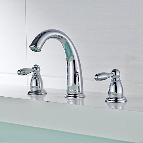 -. Title : Touch on Faucet Fapully P100063 2 Handle 3 Hole Solid Brass Bathroom Vanity Sink Faucet