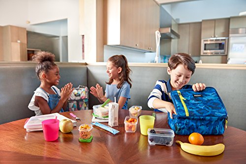 Large zip opening allows for faster top-load packing and locks in cool, dry air. A buckle handle conveniently lets you attach this lunch box to backpacks, messenger bags, sports bags and more. The exterior mesh side pocket holds an 8oz water bottle, utensils and napkin or snacks. A zip pocket stores ID cards or wipes