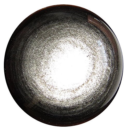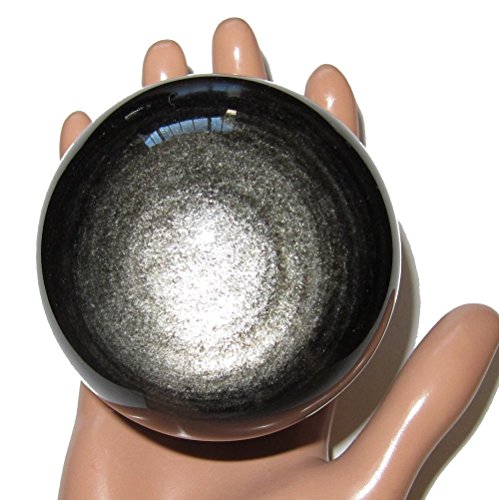 Your sphere is made from obsidian, which is volcanic glass. It appears black in normal lighting, with some white dimples and snowflake markings natural to obsidian. When placed in direct sunlight or very bright lighting, the sphere reveals wonderful silver sheen sparkles, with eye formations on both sides. One of a kind protective sphere hand picked by Satin Crystals for you. Receive this exact stone pictured when you order from Satin Crystals.