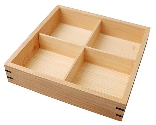 天然杉のほのかな香りが心地よい重箱。ご飯の水分を程よく吸収し、冷めても美味しく、使い込むほどに風格が増していきます。行楽行事からおもてなしまで、様々なシーンでお使いいただけるアイテムです。おかずの種類で分けられる3種類の仕切り付き。 |