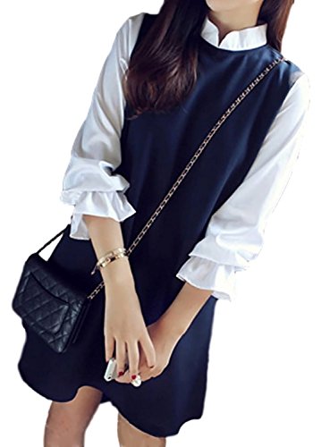 -. Feature : ホワイトのランタンスリーブとバイカラーのかわいいチュニック丈ワンピース。白地との色使いがとても綺麗で、カジュアルからキレイめまで幅広く使えるミニワンピースです。 / 季節を問わず、秋・冬のアウターのインナーにも使えます。涼しげなデザインは夏にもぴったり。綺麗なシルエットがスタイリッシュな雰囲気を引き出します。キュートで可愛らしさが表現できるのでお呼ばれや女子会などにオススメ。これ一枚でおしゃれなコーディネートが完成する楽ちんアイテムです。 / 袖のフリルがかわいい女の子を演出、オシャレにもデイリーにも使い回せる優秀アイテムです。着痩せ効果UPの程よいゆる感が、華奢見せ効果を発揮してくれます。派手すぎない上品さがとってもおしゃれで可愛い1枚。フレアな袖口シャツの上に重ね着したようなレイヤードデザインが特徴です。白シャツ×ミニ丈ワンピースは女子コーデの王道とも言えるでしょう。 / とろみ感のある爽やかな印象は女の子っぽさと大人らしさが融合した素敵な1枚になります。ネックラインはそこまで深く開いていませんが、「見せるところは見せる(ミニ丈のスカートと袖のフリル)」がポイントです。男子ウケは間違いないのはもちろん、いつもはTシャツ・デニム・スニーカーなどのガーリーでカジュアルなファッションのあなたも、フェミニンな感じとなりガラリと印象を変えることができます。ゆったりめでマタニティとして着用できるし、娘さん用のお出かけ着としてもgood. / サラッと気軽に着用できる生地で、清潔感のある配色はこれからの季節に大活躍です。生地感はカジュアル過ぎず、結婚式、二次会、入園式などのフォーマルなパーティーやお呼ばれのドレスとしても。 カラーは、落ち着いた大人のネイビーをご用意しました。はやりすたりのない色ですので来年・再来年と長くお使いいただけます。 サイズ【M】着丈79cm 胸囲95cm 肩幅37cm【L】着丈80cm 胸囲98cm 肩幅38cm【XL】着丈81cm 胸囲105cm 肩幅40cm  海外製品で小さめの作りとなっておりますので、一つ上の 大きいサイズ での購入をお勧め致します。