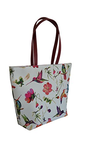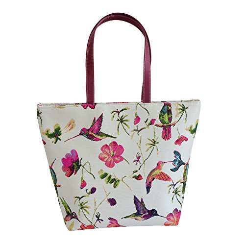 Bird Design Women's Tapestry Shoulder Tote Handbag with Owl Ladybird and Hummingbird
