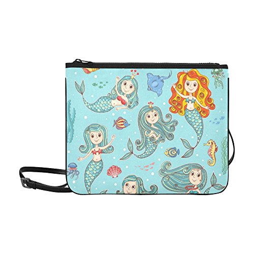 Silly Meow Beautiful Mermaid Custom High-grade Nylon Slim Clutch Bag Cross-body bag Shoulder Bag