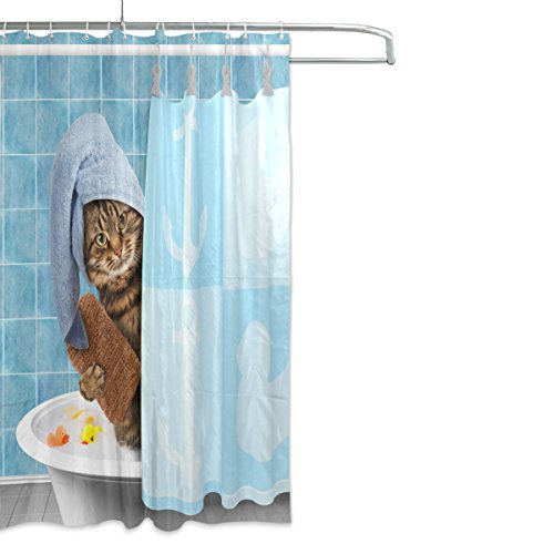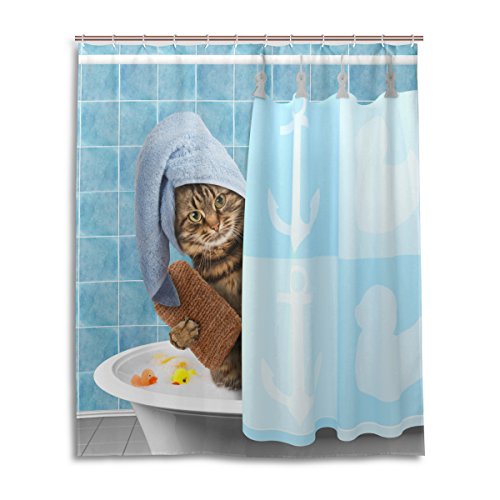 ALAZA Funny Cat Taking Bath Home Decor, Waterproof Polyester Bathroom Shower Curtain with Hooks 60 W x 72 H inches