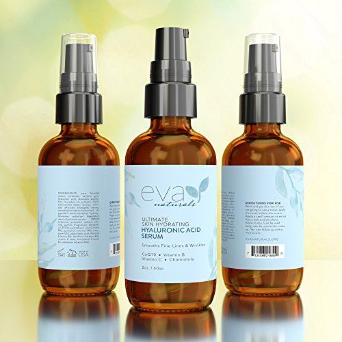 The ultimate in anti-aging hydration! hyaluronic acid is more than just a buzzword. It’s incredible ability to hold water and plump wrinkles has made it the go-to filler for those looking to turn back the hands of time. But what if you want great results without needle injections? Eva naturals introduces our potent hyaluronic acid serum! loaded with nourishing vitamins and oils, our unique blend is one you won’t find anywhere else. In addition to moisturizing skin and smoothing away fine lines, hyaluronic acid promotes a fresh, dewy complexion. To kick anti-aging into high gear, coq10 and Vitamin B team up to promote cell health, prevent sagging and enhance elasticity! and for a little preventative care, vitamins c and e defend against free radical damage and UV rays. You don’t have to face a needle to boost collagen production, brighten your complexion or get firmer skin. Our silky smooth serum contains natural, high quality ingredients that penetrate deep without clogging pores for unmated results! why choose our hyaluronic acid serum? - Provides deep hydration - helps reduce the appearance of wrinkles - fights free radical damage - brightens complexion - non-comedogenic. Try it today risk free with our money back satisfaction guarantee! *stock is limited. Order today to ensure availability. Order your serum now and say hello to younger-looking skin.Feature