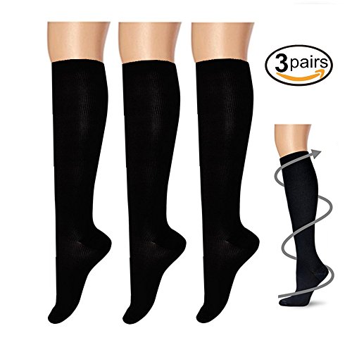 Compression Socks,(3 pairs) Compression Sock for Women & Men - Best For Running, Athletic Sports, Crossfit, Flight Travel - Suits Nurses, Maternity Pregnancy, Shin Splints - Below Knee High