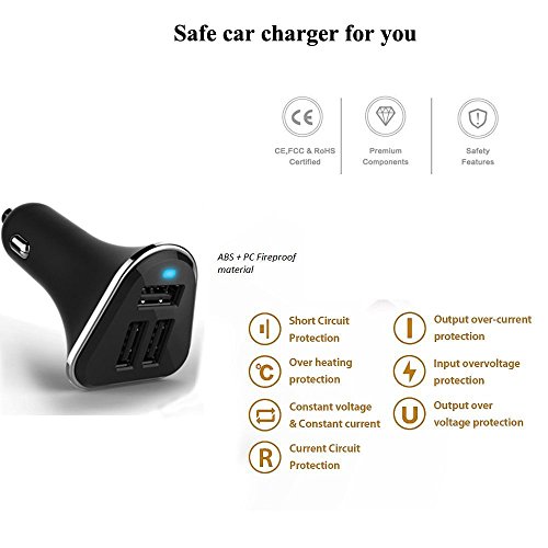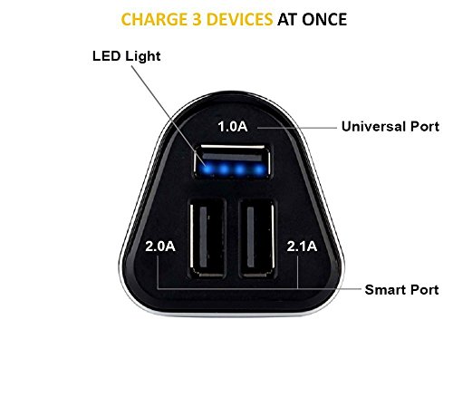 Universal 3 Port USB Car Charger and 3ft 8 pin lightning cable, can simultaneously charges any 3 tablet or smartphone devices at full speed with 2 high-speed 2.1A USB ports and 1 high-speed 1A USB port. Just plug this Cigarette Charger into your car's, RV's or truck's cigarette lighter and connect it to your devices. And is compatible with all standard cigarette lighter sockets in every car, RV or truck.