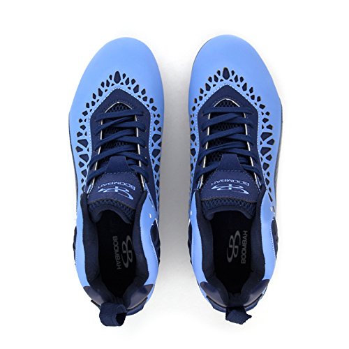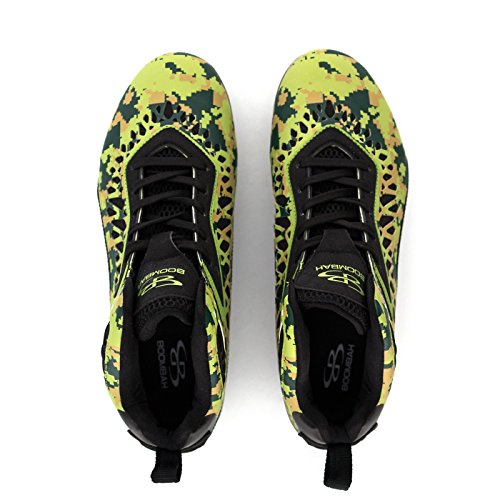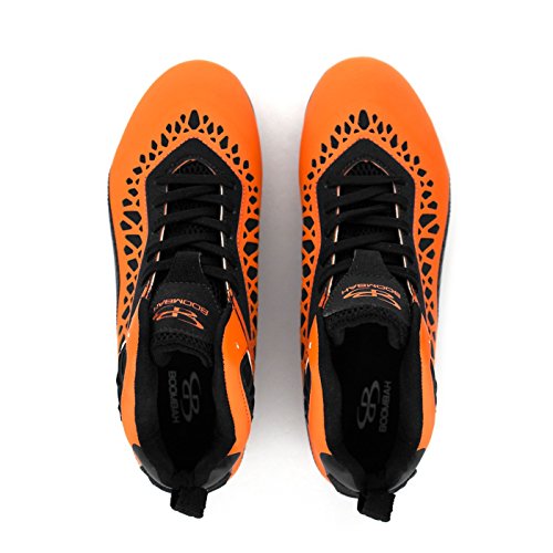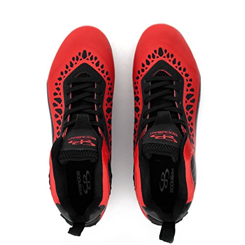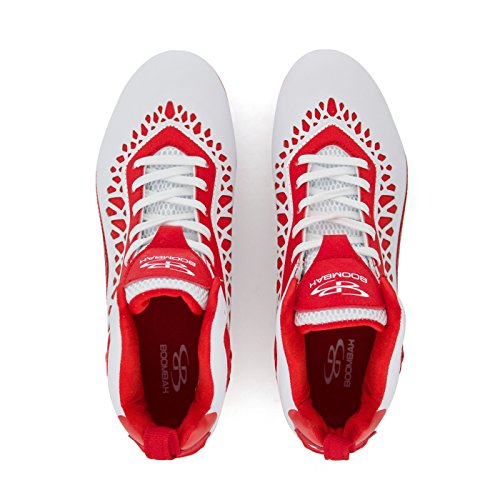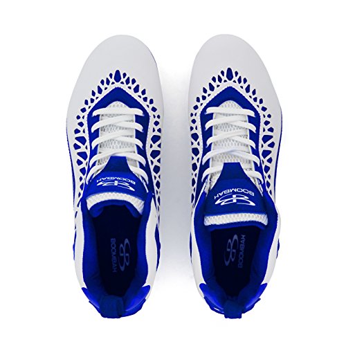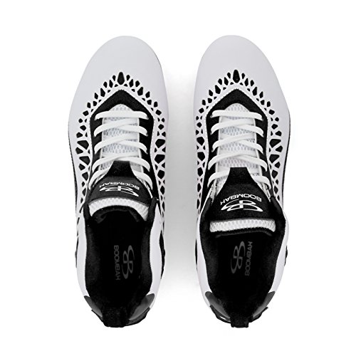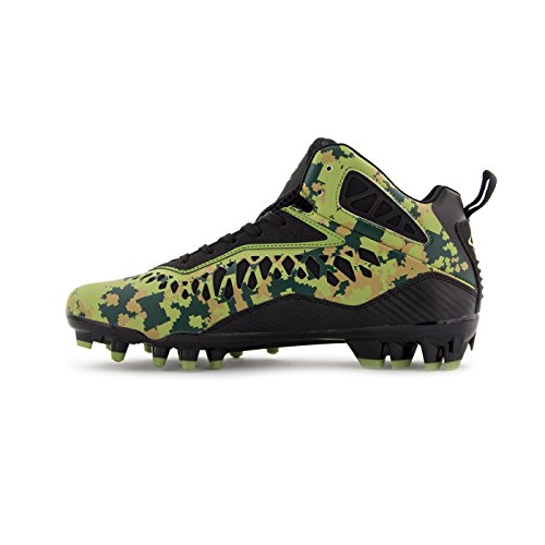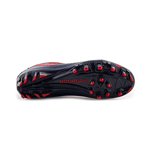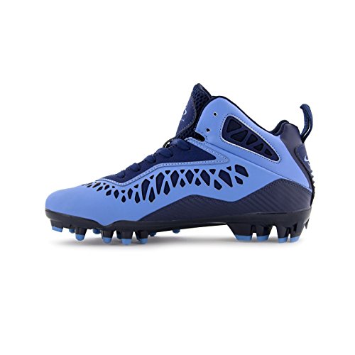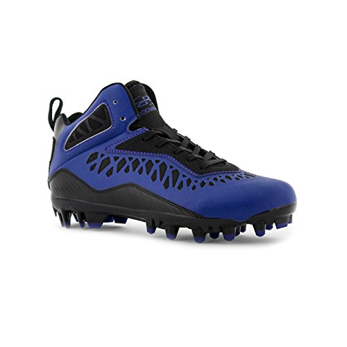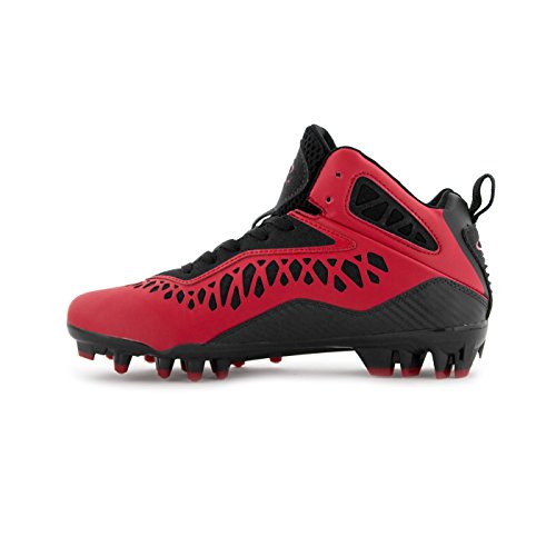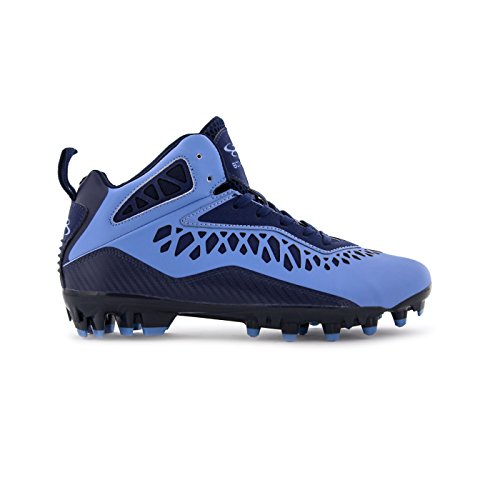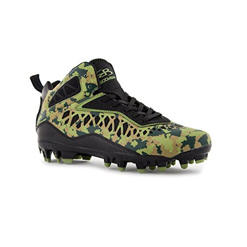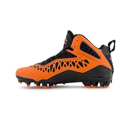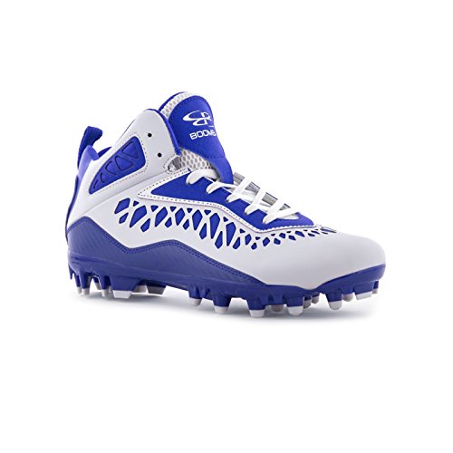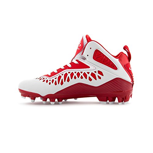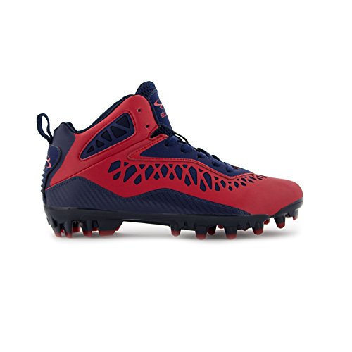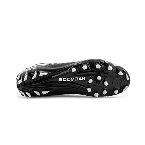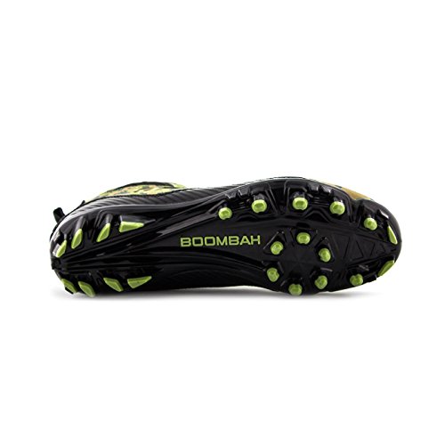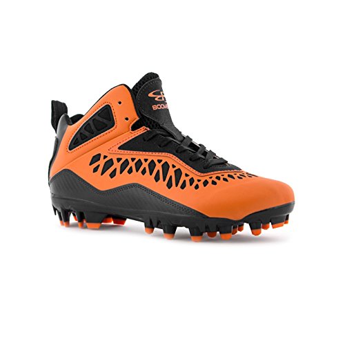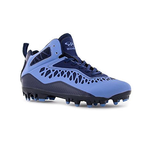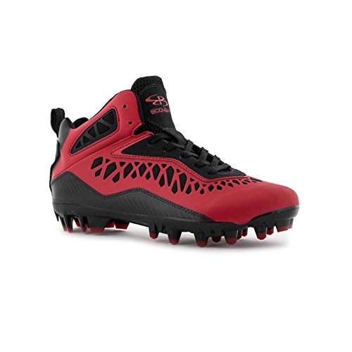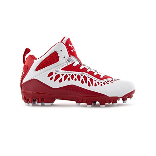 Studio : Boombah Publisher : Boombah Binding : Misc. Product Description Boombah Men's Gamma Burst Molded Mid Football Cleats - Multiple Color Options - Multiple Sizes Our Gamma Burst Molded Mid Football Cleats are equipped with armored walls and vapor ports with a Galaxy PU underlay for moisture reduction. Key features include: - Laser cut diamond chop outs with micro-perforated Galaxy PU underlay for moisture reduction - Extra durable mudguard overlay with carbon fiber texture for strength and moisture protection - Mid collar protection with additional Vapor Ports - High density heal pad insert and TPU chassis construction in conjunction with the pivot ring cleat configuration provides explosive angular motion in any direction - Pebax shank ridges are co-molded through the heel and shank to provide chassis stability and motion control - Fits true to size. 10 oz. Mid cut