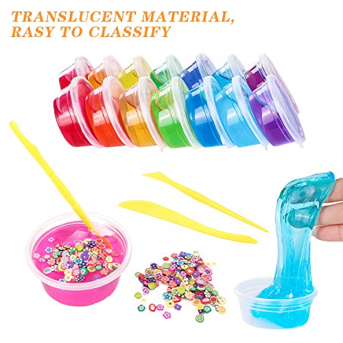Slime Storage Containers Including: 20 × storage containers + 3 × slime tools+250×mix slice(flower and fruit).
