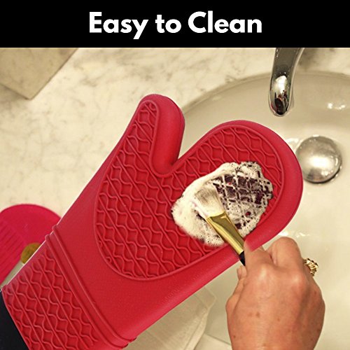 INCREDIBLY SAFE AND RELIABLE - Silicone Oven Mitts (TM) are made of food grade, waterproof silicone material and inner cotton lining. It’s free from toxic, carcinogenic substances and FDA-approved!