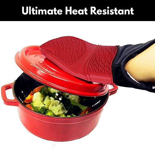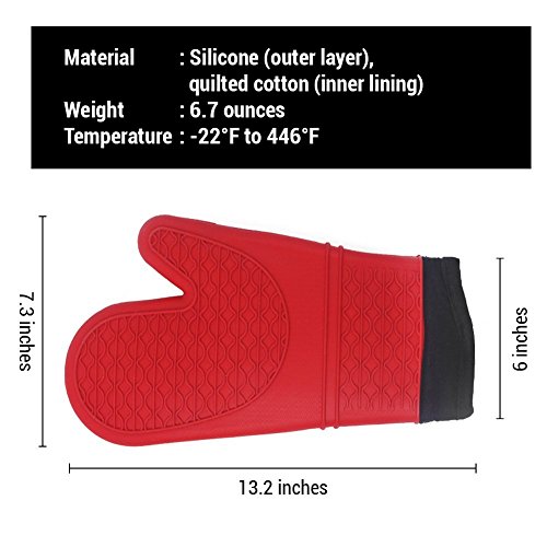 ANTI-SLIP TEXTURED SURFACE - The length of this amazing silicone potholder gloves is long enough to cover your forearm. The textured and patterned surface makes it anti-slip and easy to grip.