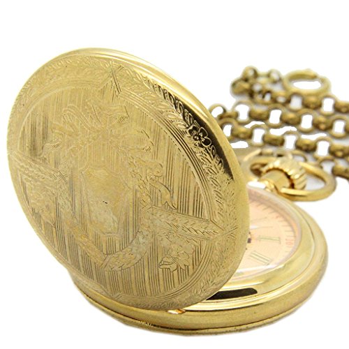 -. Title : E-future Antique Pure Brass Steampunk Gold Unisex Chain Mechanical Pocket Watch
