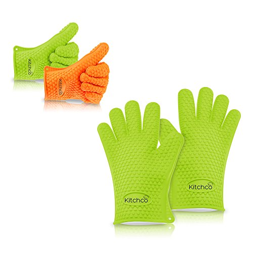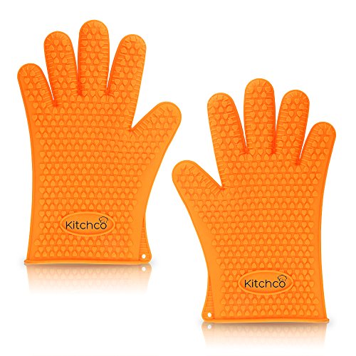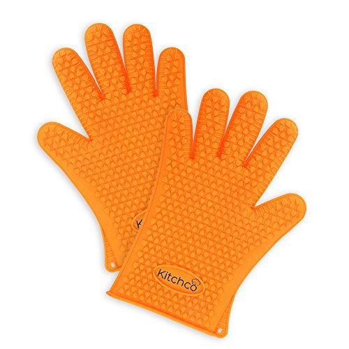 KitchCo Silicone Heat Resistant BBQ and Cooking Gloves - Directly Manage Hot Food - Orange