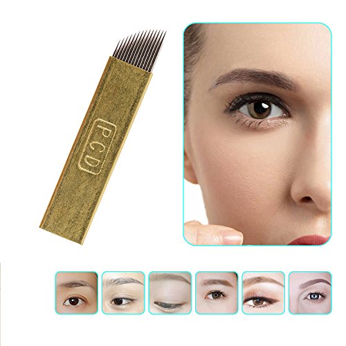 VideoPUP(TM) 50pcs Copper-clad Eyebrow Permanent Makeup Needle Manual Tattoo Micro blade 14-pin Sloped Needles