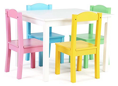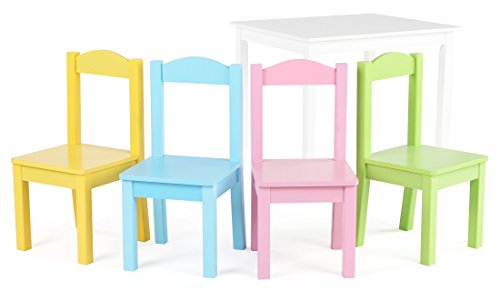 Tot Tutors Kids Wood Table and 4 Chairs Set, White/Pastel (Pastel Collection)