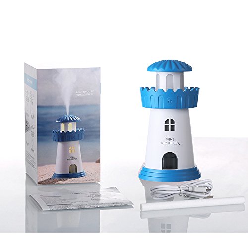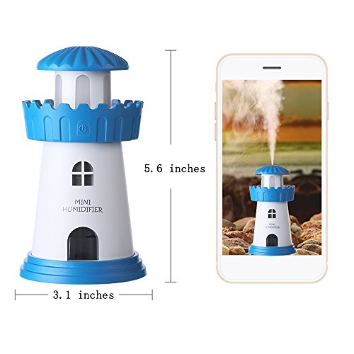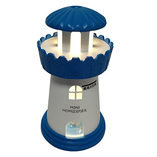 - USB Humidifier With Night Light: This lighthouse model(tower shape) mist humidifiers is powered by USB, it is very easy to use in any place such as in your office, in your living room, even in your car. And the gradually changing warm white night light feature makes it very beautiful and helpful for baby sleeping
