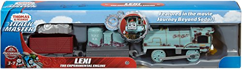 -. Binding : Toy -. Brand : Fisher-P.R.Ice -. EAN : 0887961538731 -. Feature : Inspired by the Thomas & Friends DVD movie Journey Beyond Sodor / Includes TrackMaster Lexi the Experimental Engine motorized toy train and two cargo cars / Flip the switch to see her race forward and tow her cargo cars / Motorized train play is compatible with TrackMaster track and train sets (sold separately) / Unique addition to any collection of Thomas & Friends toy trains -. Label : Fisher P.R.Ice -. Manufacturer : Fisher P.R.Ice -. Model : FJK52 -. MPN : FJK52 -. NumberOfItems : 1 -. PackageQuantity : 1 -. PartNumber : FJK52 -. ProductGroup : Toy -. ProductTypeName : TOYS_AND_GAMES -. Publisher : Fisher P.R.Ice -. ReleaseDate : 2017-10-18 -. Studio : Fisher P.R.Ice -. Title : Fisher-P.R.Ice Thomas & Friends TrackMaster Lexi the Experimental Engine -. UPC : 887961538731 -. Warranty : No Warranty