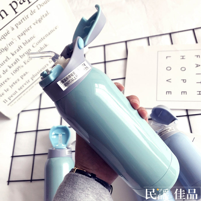 韩版简约保温杯不锈钢成人便携吸管杯男女学生可爱迷你清新水杯子