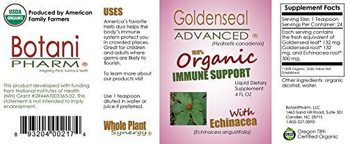 Studio : BotaniPharm Publisher : BotaniPharm Binding : Health and Beauty Product Description Hydrastis canadensis, or goldenseal, is one of those bitter herbs whose beneficial effects on digestion were first shown to European Settlers by the Native Americans. Traditionally used for infections, digestive disorders, sore mouth, and wound healing, more than 3,000 scientific articles currently exist supporting the potential benefits of goldenseal and/or it primary alkaloid constituent, berberine. Modern science has discovered these effects can be attributed to a number of compounds found in the plant called alkaloids, the primary one being berberine. Besides the active compounds in goldenseal, the plant contains other constituents which act synergistically with the alkaloids to increase their potency and/or reduce any potential adverse effects. Another beneficial aspect of goldenseal is that it does not contribute to the emergence of drug resistant bacteria. One of the most often reported historical uses for goldenseal is for cases of bacterial induced diarrhea. Made in the USA. Certified organic Contains 4 fl. oz. *These statements have not been evaluated by the Food and Drug Administration. This product is not intended to diagnose, treat, cure or prevent any disease. Individual results may vary. 0