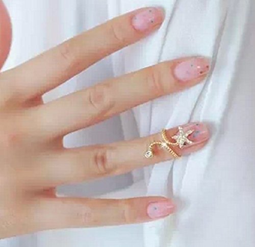 Elegant Modern Pentagram Starfish Butterfly Nail Rings for Girls Women 2Pcs Color Random