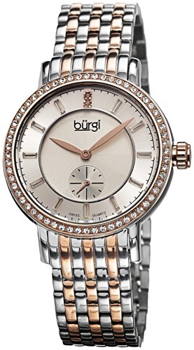 -. Title : Burgi Women's BUR099TTR Swiss Quartz Diamond Dial Silver-tone & Rose-tone Stainless Steel Bracelet Watch