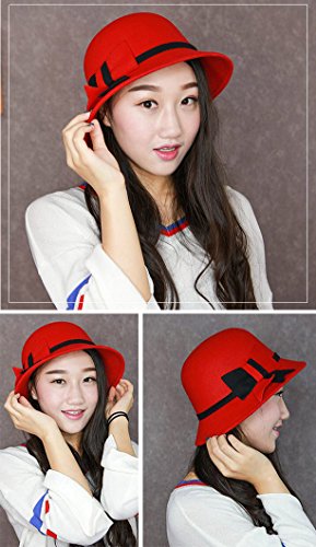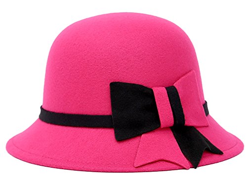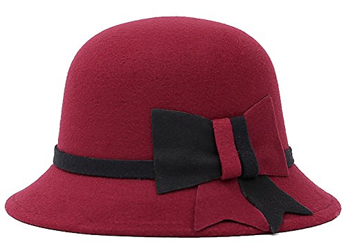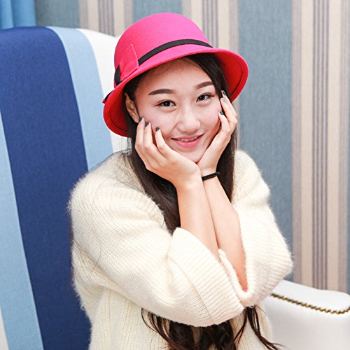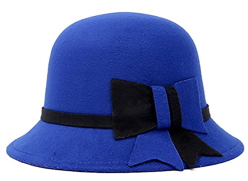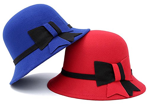 (Roffatide)/Accessories/Hats/DIRECT FROM USA/Roffatide Womens Woolen Bucket Hat Cloche Top Hat With Bowknot Winter Fedora Bowler Hat 6 Colors