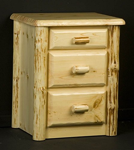 Studio : Viking Industries, Inc. Publisher : Viking Industries, Inc. Product Description Wilderness Collection. 3 Drawers. All accent logs and handles have some of the cambium or bark on the log to give it a more rustic look for your log home. All drawer fronts and tops are hand draw knifed to give each piece unique character. All drawer boxes are solid Aspen with dovetail construction. Drawers use side mount, epoxy coated, 0.75 in. extension roller slides that are rated for 100 pounds. Aromatic Red Cedar lines the bottom of every top drawer. Drawer fronts and tops are constructed of solid laminated strips of 1.50 in. Ponderosa Pine which helps to prevent warping and cracking. Finished with moisture resistant catalyzed lacquer to protect the cabinet. Made to order in the US. Lifetime warranty. 25 in. W x 19 in. D x 30.5 in. H. The Wilderness Log Furniture 3 Drawer Nightstand is a perfect accent piece for any log bedroom setting. It fits nicely on either side of any log bed. It is slightly taller than the wilderness 2 drawer nightstand, but serves the same purpose. This nightstand has 1 little drawer, over 2 bigger ones. The little top drawer works excellent for storing reading glasses and other personal belongings. 0